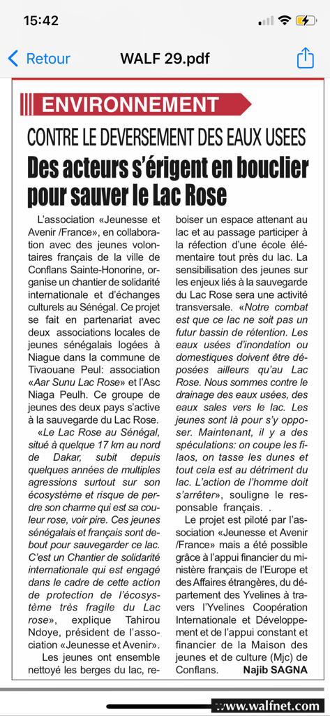 · Contribuer à installer des habitudes de nettoyage régulier et collectif des berges du lac rose à travers la sensibilisation des jeunes